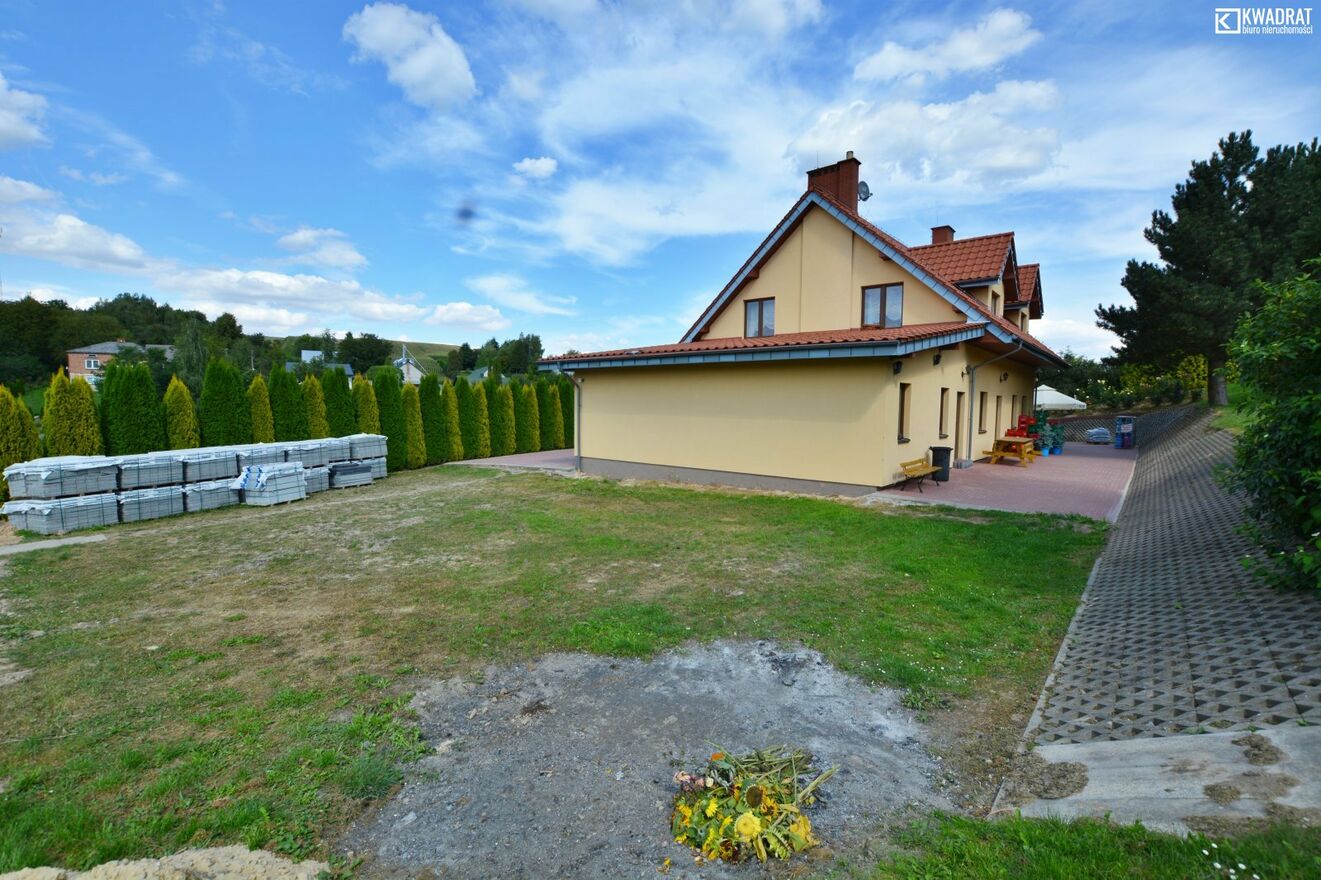 Do wynajęcia atrakcyjny lokal handlowo-usługowy o powierzchni 256,9 m2, usytuowany w wolnostojącym budynku z poddaszem użytkowym znajdujący się w miejscowości Gródki Pierwsze gm. Turobin . Nieruchomość położona jest na działce o powierzchni 430 m2, a dodatkowym atutem jest 1000 m2 utwardzonej kostki brukowej, idealnej pod miejsca parkingowe, plac manewrowy czy przestrzeń dla klientów. Budynek posiada dwie niezależne klatki wejściowe, duże witryny od frontu oraz przestronne, jasne pomieszczenia, które można dowolnie zaaranżować pod działalność usługową, handlową lub biurową. Dzięki swojemu układowi i lokalizacji obiekt może być wykorzystywany w bardzo szerokim zakresie - od sklepu, gastronomii czy biur, aż po specjalistyczne usługi.Atuty lokalu: :